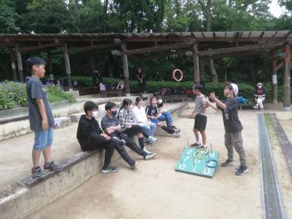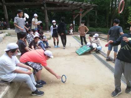 アスレチックはとても楽しく、2回目に挑戦する子もたくさんいました。終わると輪投げで遊びます。