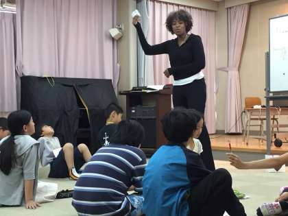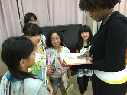 スー先生の英語レッスンは、いつも笑顔がいっぱいで楽しいです。授業が終わった後も交流が続きます。日本語のハリーポッターの本をみて、「はじめて見たわ!」と目を丸くしていました。