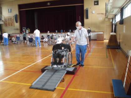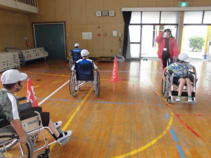 5年生は講堂で車いす体験学習をしました。教えていただいたのは「大阪市立心身障がい者リハビリテーションセンター」の方々です。段差や狭い場所、坂など操作のむずかしいことも体験できました。車いすに乗っている人の気持ちを理解し、バリアフリーの大切さについて考えることができる学習でした。