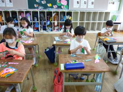 1年生は着々と「ひかりまつり」の準備を進めています。今日はお店の飾りを折り紙で作っていました。楽しいお店にしようとやる気いっぱいです。