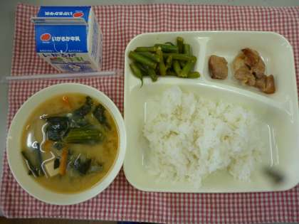 6月15日の給食は「鶏肉のしょうゆバター焼き」「豆腐のみそ汁」「三度豆のごまあえ」です。「鶏肉のしょうゆバター焼き」は香ばしく焼けており、おいしく調理されていました。