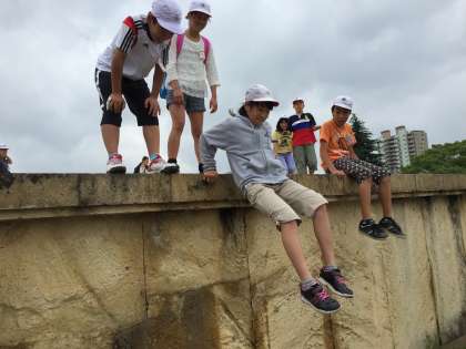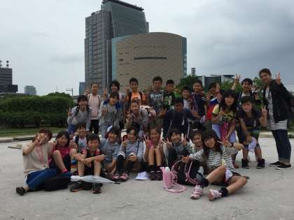 難波宮遺跡の大極殿の上でお弁当を食べました。
