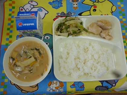 6月21日の給食は「鶏肉のおろしじょうゆかけ」「みそ汁」「野菜炒め」です。「鶏肉のおろしじょうゆかけ」は大根おろしが肉の味を引き出していました。