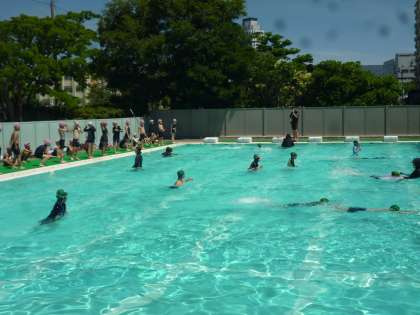 昨日からプール水泳が始まりましたが、今日は3年生と4年生のプール開きをしました。