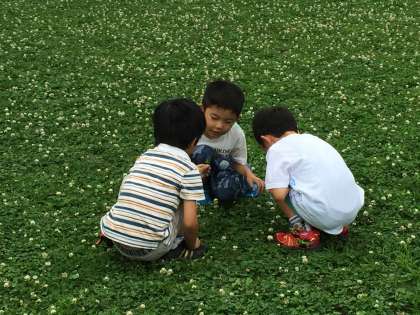 芝生ひろばは放課後になるといろいろな子がやってきます。遊具で遊んだり、鉢植えの世話をしたり、ここはみんなの憩いのスペースです。