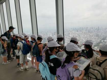 大阪城や四天王寺など有名な場所を確認して、ワークシートに記入しています。