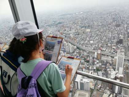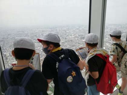 上から見る大阪は迫力いっぱいで、子どもたちは感動していました。