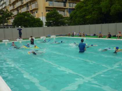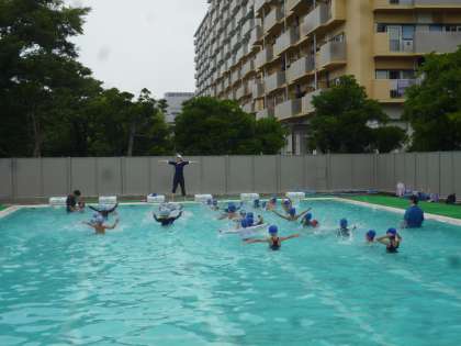 今日、7月15日で1学期のプール水泳が終了しました。1年生と2年生は曇り空の下、歓声をあげながらプール水泳を楽しんでいました。2学期も9月の2週目までプール水泳を続けます。