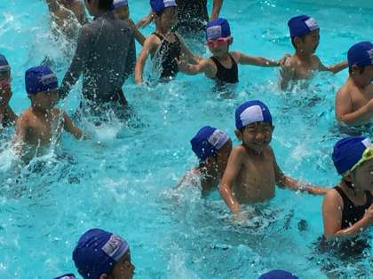 1・2年生も2回目のプールで水に慣れてきました。特に今年の1年生は、水をこわがる子がいないので、思い切りプールを楽しんでいます。