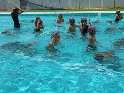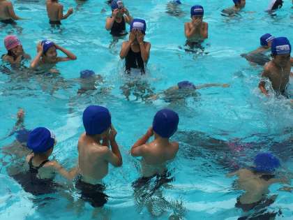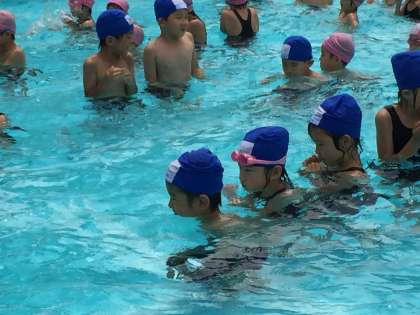 1年生も、顔をつけて浮かぶことができる子もいます。とにかく、水に親しんで、楽しむことが大切です。