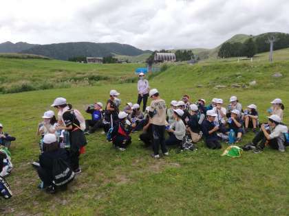 登山を終え、ジュースを飲みます。頑張った後のジュースにみんな嬉しそうです。