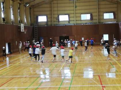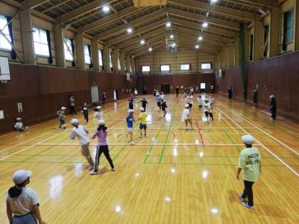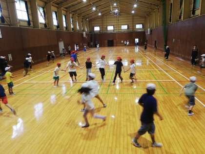 広い体育館を駆け回ります。広いのでもう汗だくです。