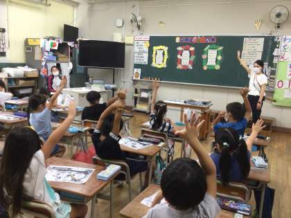 今日は南港みなみ小中一貫校から栄養教諭の先生が栄養指導の授業に来てくださいました。1年生は、食べ物は、き・あか・みどりに分けられることを知りました。「給食カレンダーにのってるよ。」「毎日の給食こんだてのお話の時、きいたことがある。」と言いながら、上手に分類ができていました。