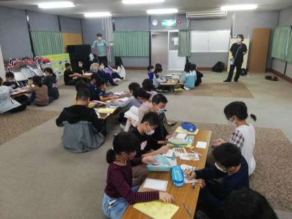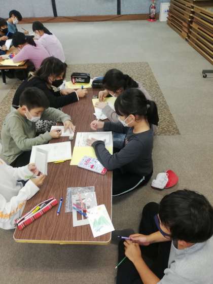 家族などへの絵はがき作成の様子です。悩みながら文章を考えていました。昨日の入浴がスムーズだったので30分遅らせて入浴中です。