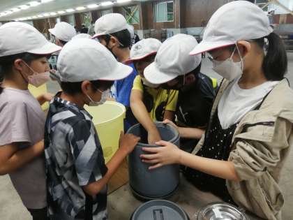 氷を入れた外容器にアイスクリーム容器を入れます。