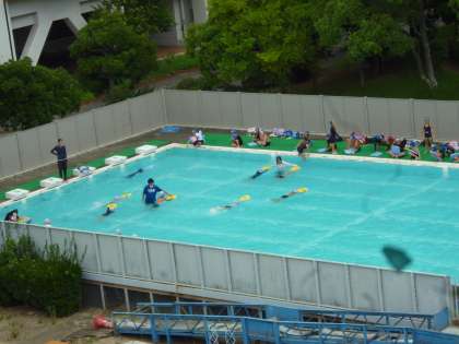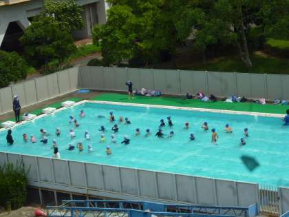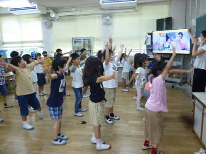 9月になっても猛暑が続いており、今日もプール水泳には十分な暑さです。1・2年生は今年のプール水泳を終了しました。ビート板を使ってバタ足をするなど、しっかりと泳いでプール水泳を締めくくりました。そのあと、動画を見ながら運動会のダンスの練習をしました。