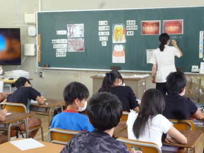 6年生は歯科衛生士の先生から「歯と口の健康教室」の学習をしていただきました。虫歯菌など虫歯になる仕組みや歯周病など、歯や口の健康について学びました。