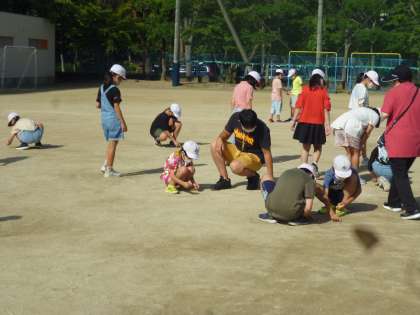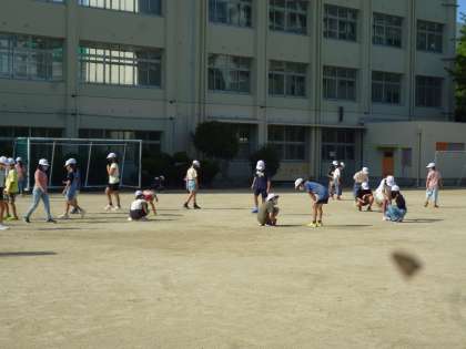 プール学習が終了し、運動会の練習が始まっています。今日は子どもたちがけがをしないように運動場の石拾いを児童朝会後に行いました。