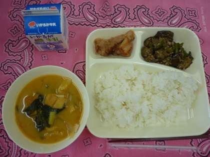 9月16日の給食は「鶏肉のてり焼き」「みそ汁」「なすのそぼろいため」でした。鶏肉のてり焼きはとても食べやすい大きさで、味付けも甘辛でおいしかったです。みそ汁の具にはカボチャが入っていて、甘さが引き立っていました。