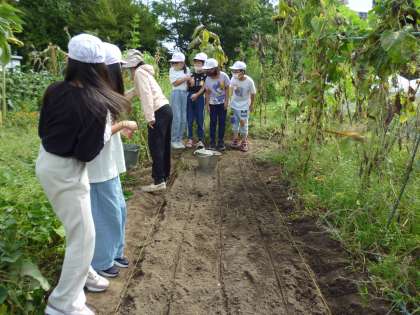 4年生は理科でアブラナの種をまきました。間隔や深さに気をつけながら学習園に蒔いていきました。来年の春まで世話を続けていきます。