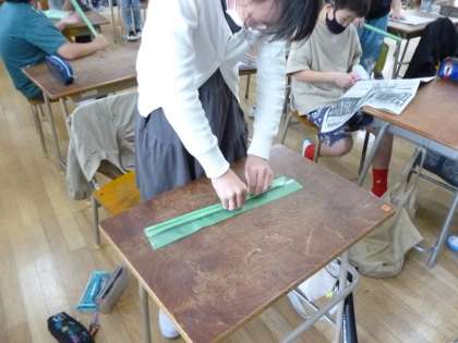 5年生は運動会で踊るダンスの小道具を作成していきました。ダンスでどのように使うのかは当日を楽しみにしてください。