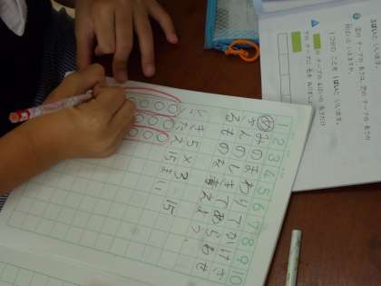 2年生はかけ算を学習しています。今日は「いちごが1パックに6個入っています。3パックでは何個になりますか」(6×3=18)というように身の回りでかけ算を使って表せるものを見つける学習です。