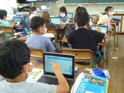 ノートに図をかいたり、タブレットで問題をつくったりして、最後は友達にタブレットで作った問題を見せて解いてもらいました。