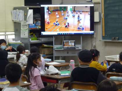2年生はダンスの練習を動画撮影し、教室で見ました。自分の踊りを確認して修正するところを見つけていきました。