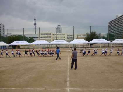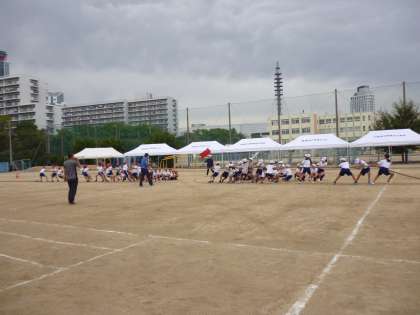 3年生、4年生は綱引きの練習をしました。先生の掛け声に合わせて懸命に綱を引っ張っていました。