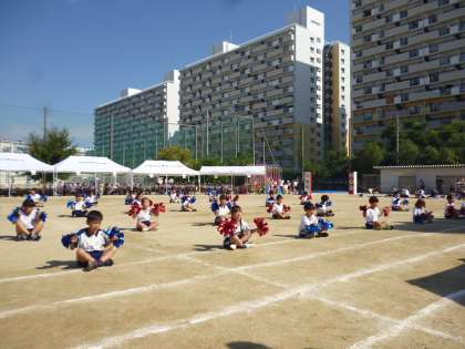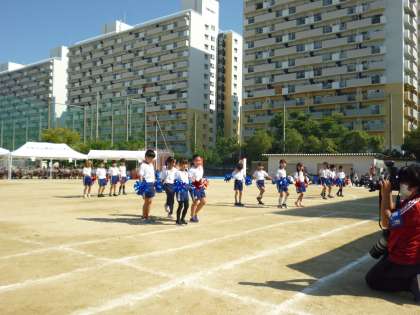次はダンスです。1年生・2年生の「ひかりっこチアーズ☆」です。ポンポンを持って踊る姿が低学年らしさを引き出していていました。1年生は初めての運動会での踊りです。