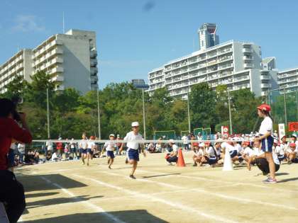 5年生の個人走「私は最強」です。はじめてトラックを一周します。順位に関係なくみんなが「最強」でした。