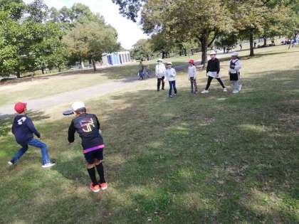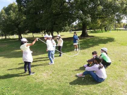 広々とした芝生広場で、とても良い気持ちになって遊んでいました。