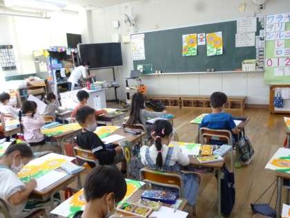 1年「ひまわり」をえがく