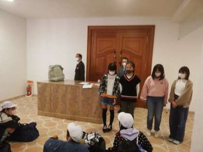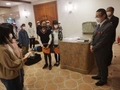 閉舎式をして、ホテルの方にお礼を言いました。そのあとスペイン村での注意点を聞きます。