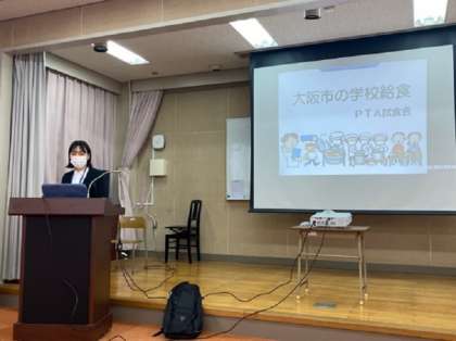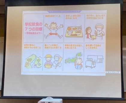まず初めに教頭先生からのご挨拶。光小学校の児童は給食をよく食べている、残食が少ないと聞いて嬉しい始まりでした。