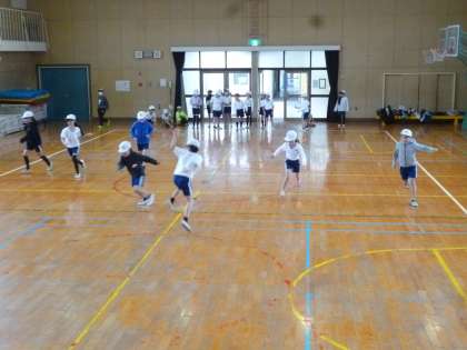 3年生はマット運動に取り組みました。準備体操の後に「NOBY」で習った走る運動をしてマット運動を始めました。前回りから開脚前転、後転とうまく回ろうとがんばって進めていました。