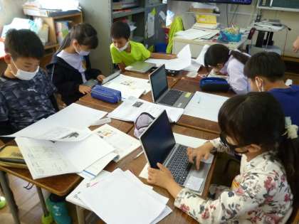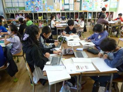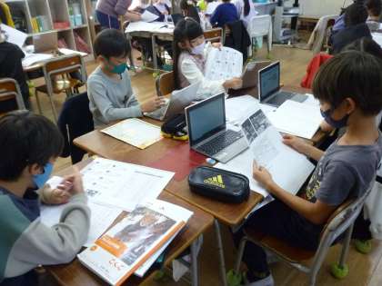 3年生は国語で説明文「パラリンピックが目指すもの」を学習しています。説明文を読んでわかったことと、インターネットで調べたことをリーフレットにまとめていきます。しっかりと調べてパラリンピックの知識を得ていました。