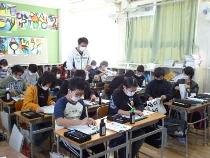 6年生は習字でひらがなを書きました。ひらがなは簡単そうですが、漢字に比べ曲線が多く、習字では書くのが案外難しいものです。