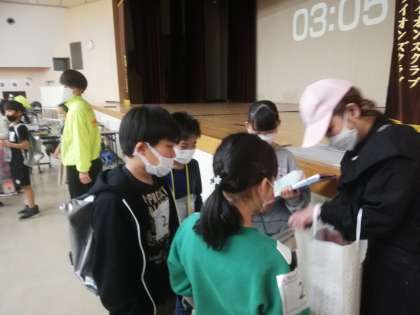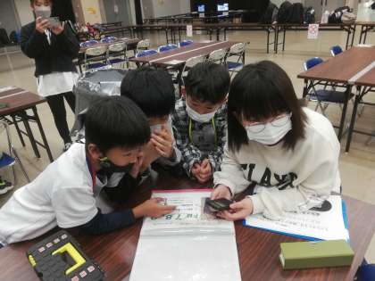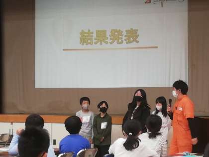 ミッションの制限時間の60分になりました。すべての班が時間内にミッションクリアです。どのように行動するか、自分達で考えないといけないので、みんな頭を使って進めていました。1番にクリアした班を前で紹介してもらいました。これからも防災について考えていってほしいと願っています。