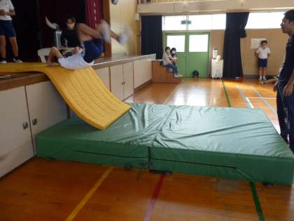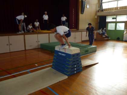 6年生は跳び箱とマット運動をしました。セーフティーマットを使うなど、難しい技にも挑戦していました。