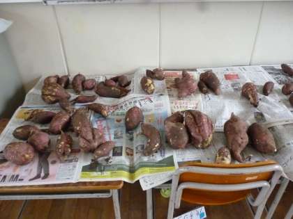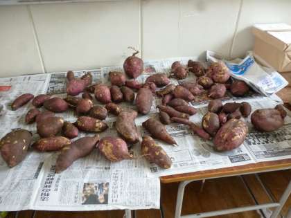 さつまいもの写真は2年生が収穫したいもです。大きくてたくさん収穫できました。