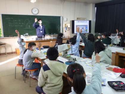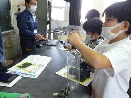 5年生は大阪管区気象台の方々に理科の特別授業をしていただきました。雨が降る仕組みなど、丁寧に教えていただきました。大雨や雷、竜巻などから身を守る方法をみんなで考えていきました。ペットボトル内に雲を発生させる実験もあり、楽しみながら身の安全について考えることができました。