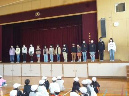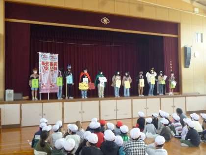 講堂において後期代表委員と各委員会の委員長の紹介をしました。各自、みんなの前で自分の抱負をしっかりと述べました。そのあと、そのメンバーが挨拶運動の大切さを劇にして表現しました。ユーモアがありとても分かりやすい内容で素晴らしい発表でした。