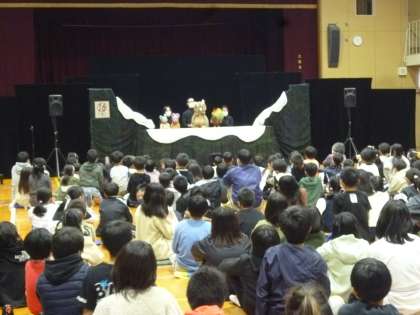 今日は全学年で人形劇の劇鑑賞をしました。ヒキガエルを食べようとするミミズクが、ヒキガエルと会話や関わりを続けるうちに、友達の大切さに気付き、仲良くなっていくお話です。友達を持つことの素晴らしさを子どもたちはしっかりと考えていました。