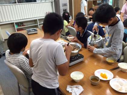 みんなのテンションが上がるのは、すき焼きです。ワイワイ言いながら食べました。