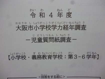 今日は3年生以上が大阪市小学校学力経年調査を受けました。今日は国語、社会、質問紙です。みんな真剣に問題に取り組んでいました。写真は質問紙に記入している様子です。なお、明日は算数と理科で、5年生と6年生は外国語も受けます。