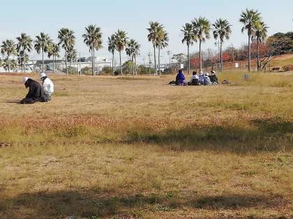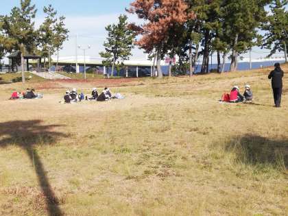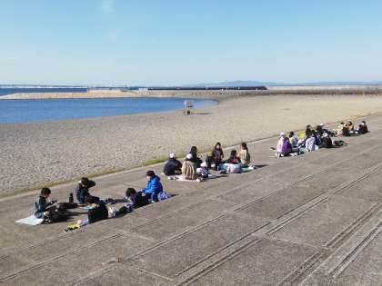 二色浜公園で昼食です。海が目の前で、関西空港の連絡橋がよく見えます。