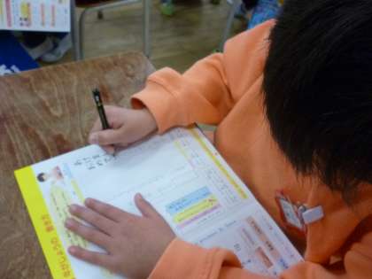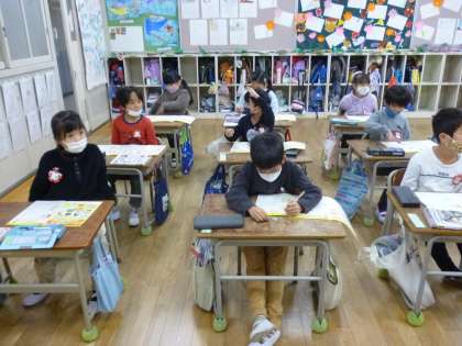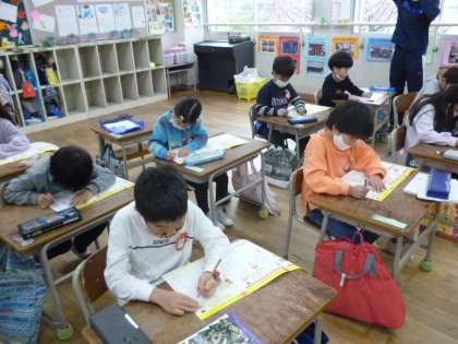 1年生は年賀状の書き方を学習しました。教科書の見本文をノートに写し、書き方を覚えていきました。