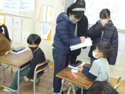 今日は「すこやかデー」といって、健康についての取り組みをする日です。児童保健委員会子どもたちが各教室を回ってハンカチ、はなかみを持っているかを確認していきました。
