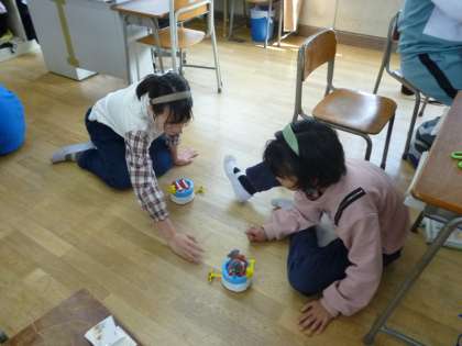 5年生は理科で電磁石の学習をしてきました。その実験が終わり、お掃除ロボットが完成していきました。できあがったらさっそく床で動かしていました。
